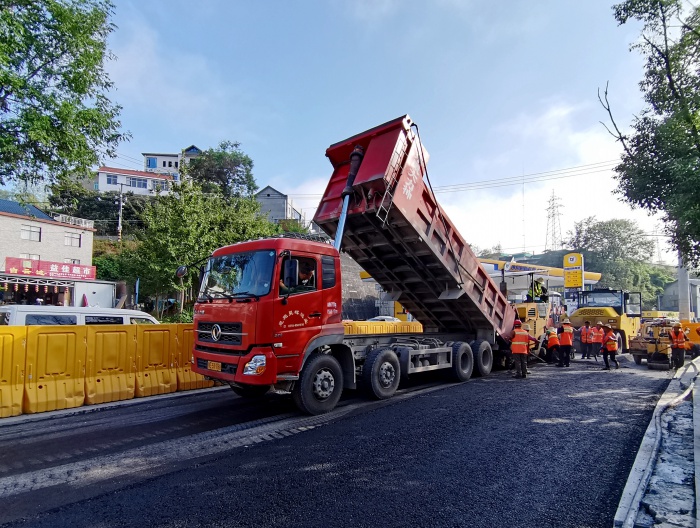 9月30日一大早,长阳中心城区(城西)排水防涝设施建设项目(津洋口化肥厂地段改造)工程路面扩宽改造最后一道工序——沥青面层铺设正紧张有序的展开。各类机械车辆开足马力、往来穿梭,施工工人在不同作业场地分工负责、紧张施工。