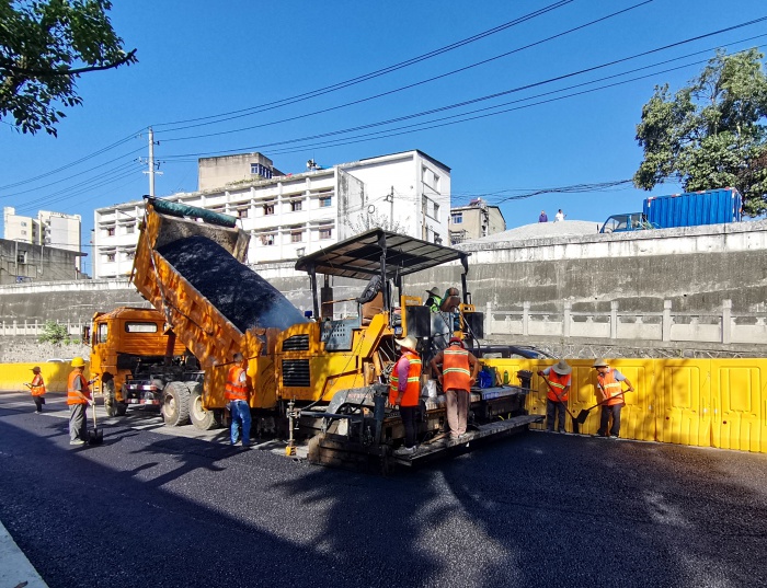 该项目自开工建设以来,在主管部门、业主和监理等单位的关怀和大力支持下,为了保证国庆节期间能让此“咽喉”部位顺利通车,项目部克服重重困难,加班加点,抢抓进度,终于赶在节前最后一天完成沥青路面表面层铺设。