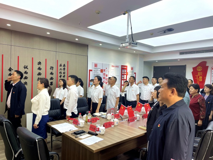会议在庄严的国歌声中拉开帷幕,县小个专综合党委成员李晓林带领全体党员重温入党誓词。